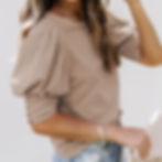 Solid Color Puff Sleeve Crew Neck Blouse
